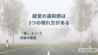 【経営の霧】 経営の違和感は3つの現れ方がある|「霧」という状態の整理 経営の違和感はひとつではありません。「次が見えない」「成功の実感がない」「削れない」といった感覚は、それぞれ異なる現れ方です。本記事では、経営に現れる「霧」を3つのパターンに分けて整理します。 2026.03.30 【経営の霧】